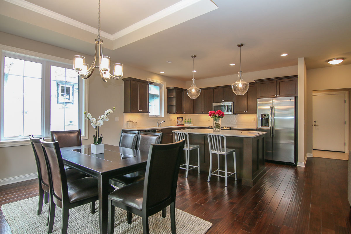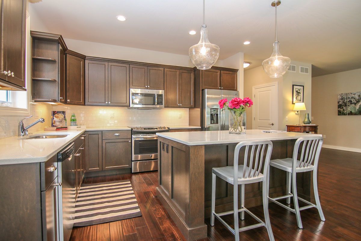 Our model home comes in at 2964 square feet. This 3 bedroom. 3 bathroom condominium is nestled between a conservancy and walking trails allowing for privacy, yet close to shopping. This level 2 finish package includes hand scraped dark hardwood floors, stained maple cabinetry, stainless GE Monogram appliances, quartz counter tops and features an open living/dining area with a screened-in porch/deck. Master suite features a spa-like master bathroom including a zero entry shower. The exposed finished lower level offers a third bedroom and bathroom providing a private retreat for your guests.