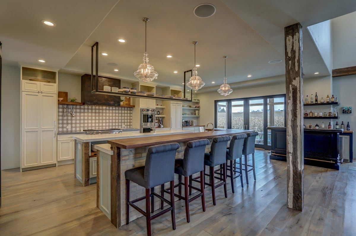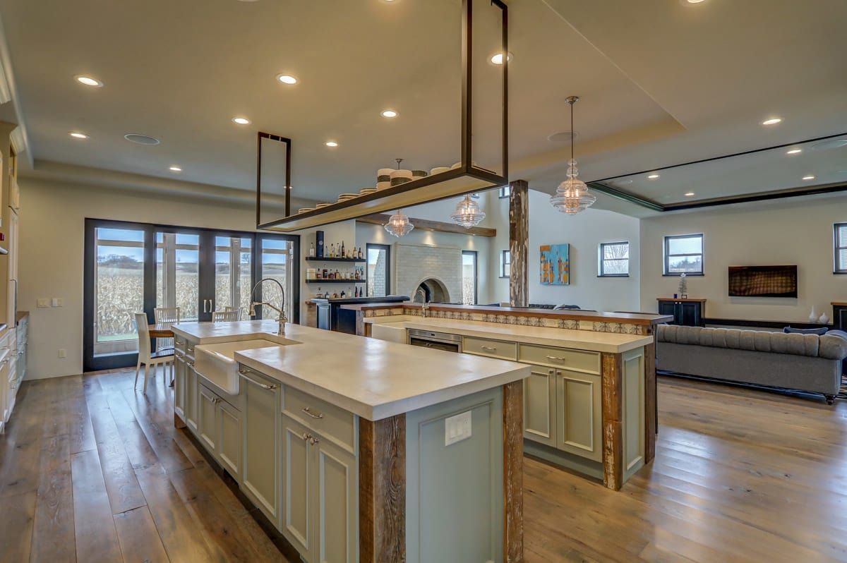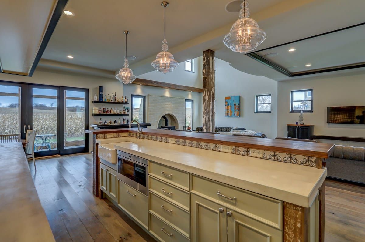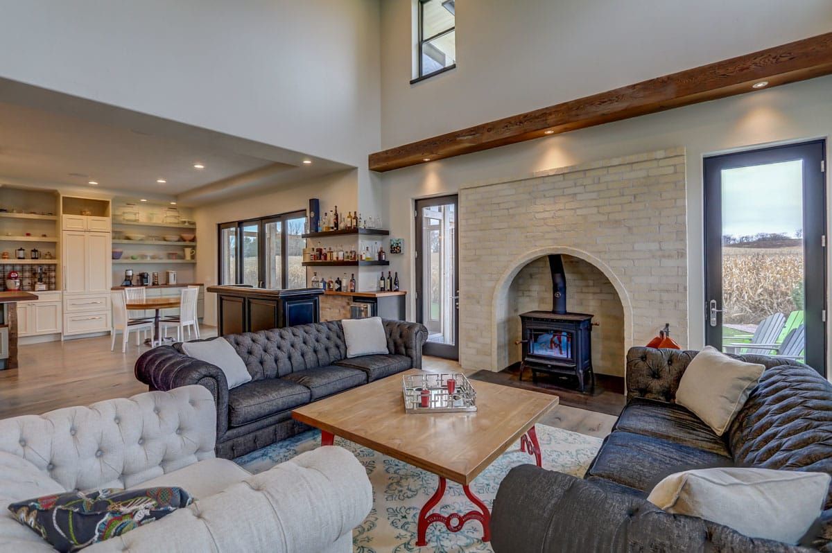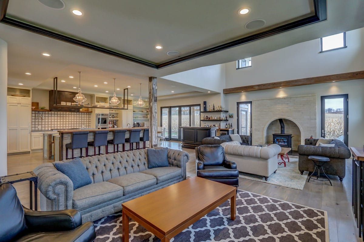 The heart of this home revolves around the main living area which artfully combines four rooms into one. The entire kitchen/living/dining/fireplace room is separated into distinct conversation zones while remaining a large and inviting space to effortlessly host plenty of friends and family members.