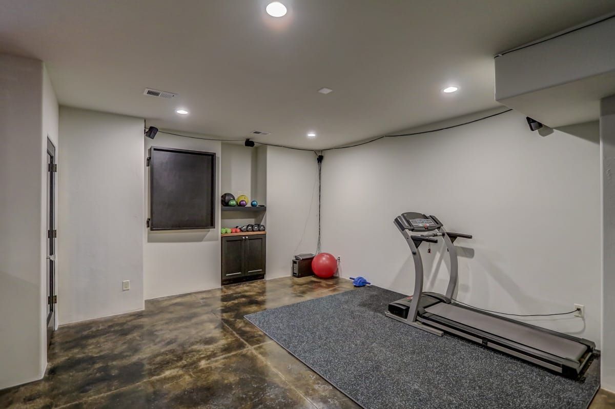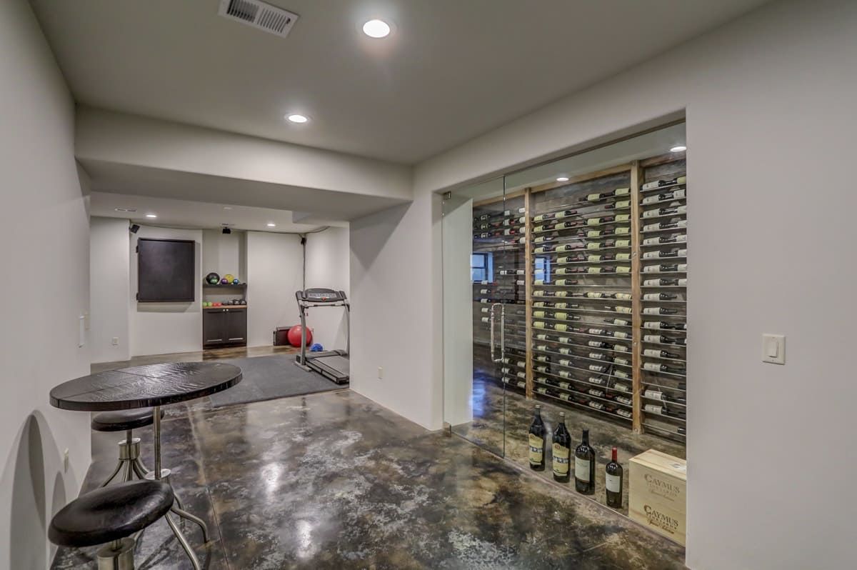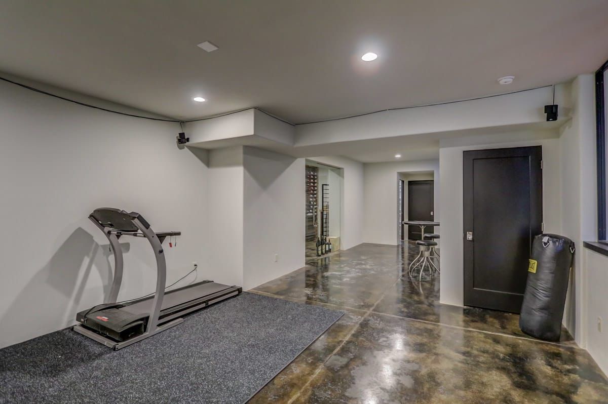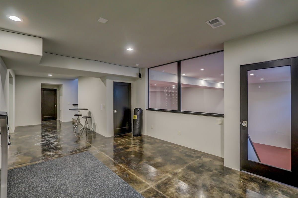 Back downstairs you'll discover a fully finished lower level complete with modern, polished concrete floors, a fifth full bathroom, a custom-built wine cellar as well as an in-home exercise area and an amazing indoor 38'x32' gym.