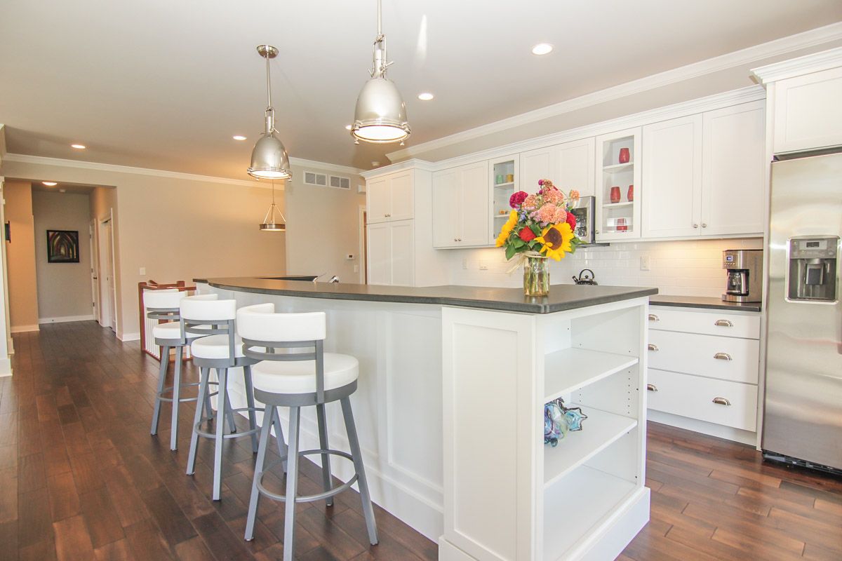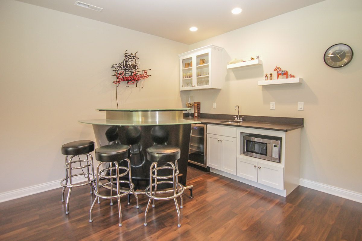 Featuring hand scraped hardwood floors on both levels and white woodwork to create a clean and modern look. Tray ceiling's along with crown molding throughout the main level, stainless appliances, fingerprint resistant-suede leather granite counters and subway tile in the kitchen overlooks the open living/dining area with screened-in porch. The finished lower level features a wet bar, additional full bath and third bedroom is perfect for guests.