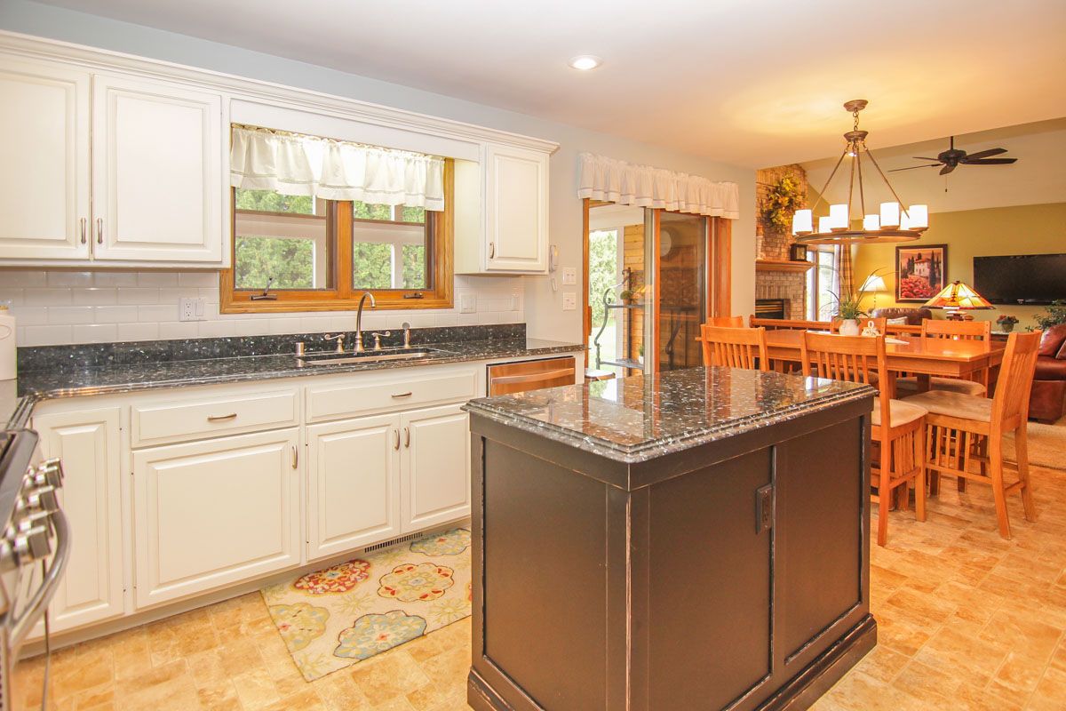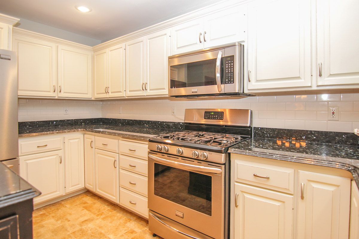 The newly remodeled kitchen has stainless steel Frigidaire appliances. Includes new french door refrigerator, gas range (2014) and boasts white subway tile with granite counter tops.