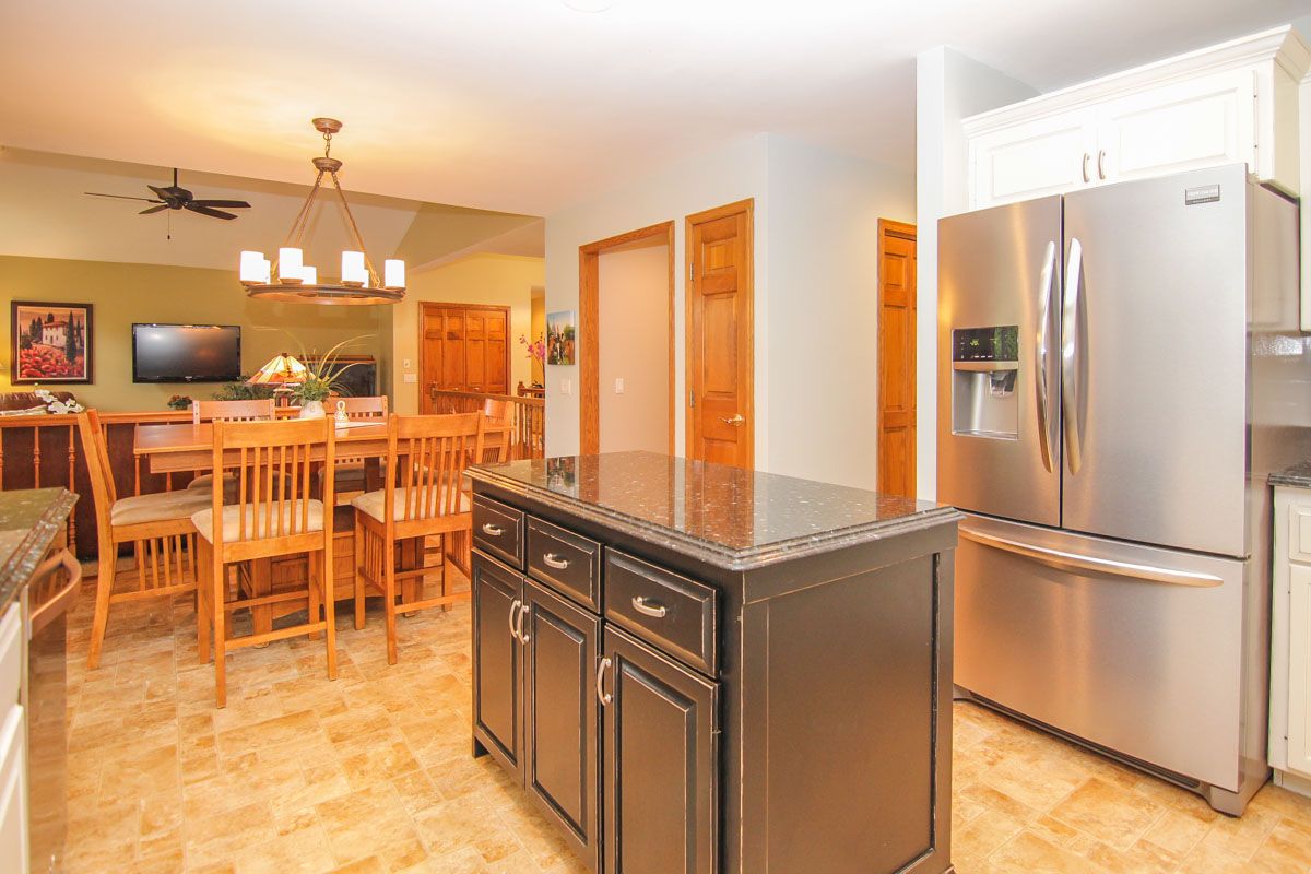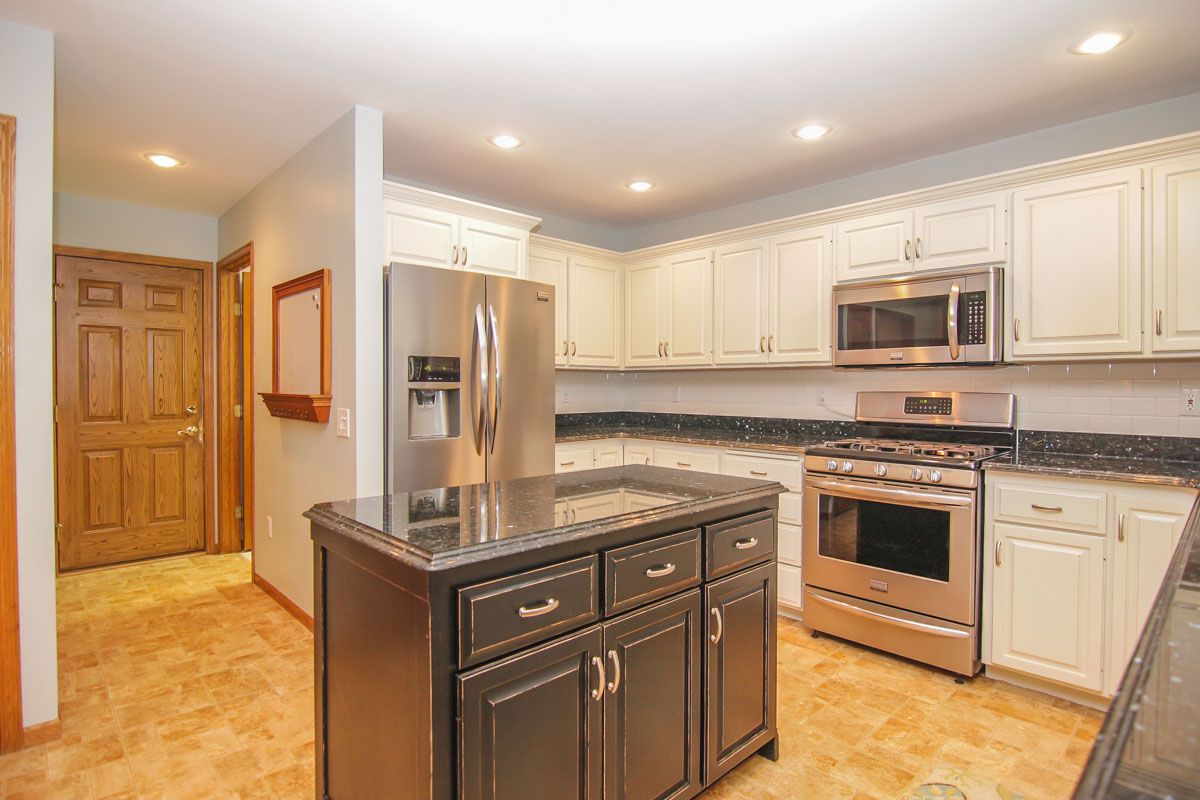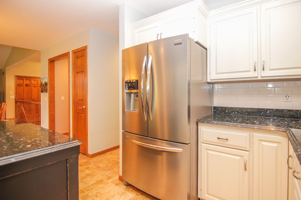 The newly remodeled kitchen has stainless steel Frigidaire appliances. Includes new french door refrigerator, gas range (2014) and boasts white subway tile with granite counter tops.