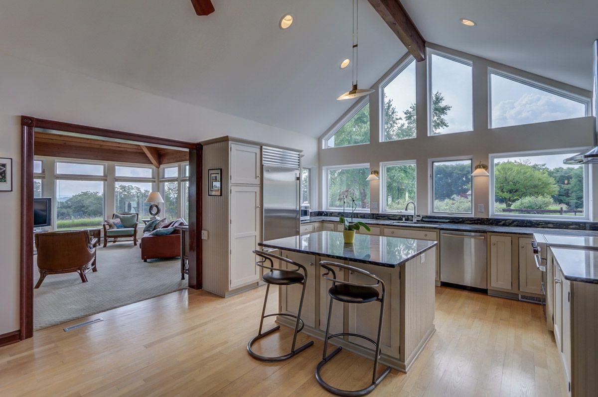Surrounded by 21+ acres of manicured pasture, private trails, and expansive woodlands, the picturesque and serene Steepleview Farm graces the crest of Sand Ridge and has sweeping views of the entire farmette.